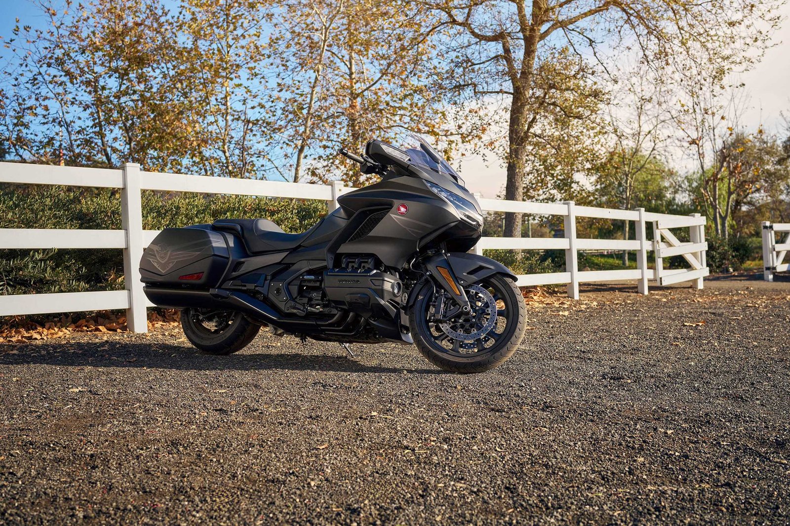 Honda Gold Wing’in çizgileri belirgin ve sportif bir ruhu yansıtırken; tasarımı benzersiz bir siluet ortaya koyuyor. Malzeme ve işçilikteki kalitesi ile imzasını koruyan Gold Wing’in öne doğru eğimli yapısı ve gövdenin önden arkaya doğru uzanan yan çizgisi, üst ve alt gövdenin farklı işlevlerini vurguluyor. Gövdeyi oluşturan granaj, keskin ve güçlü düz yüzeylere ve aerodinamik detaylarla dikkat çekerken; motosiklet, çift salıncaklı ön süspansiyonu, yatay altı silindirli motor ve egzozlar dahil tüm işlevsel güzelliğini gözler önüne seriyor.